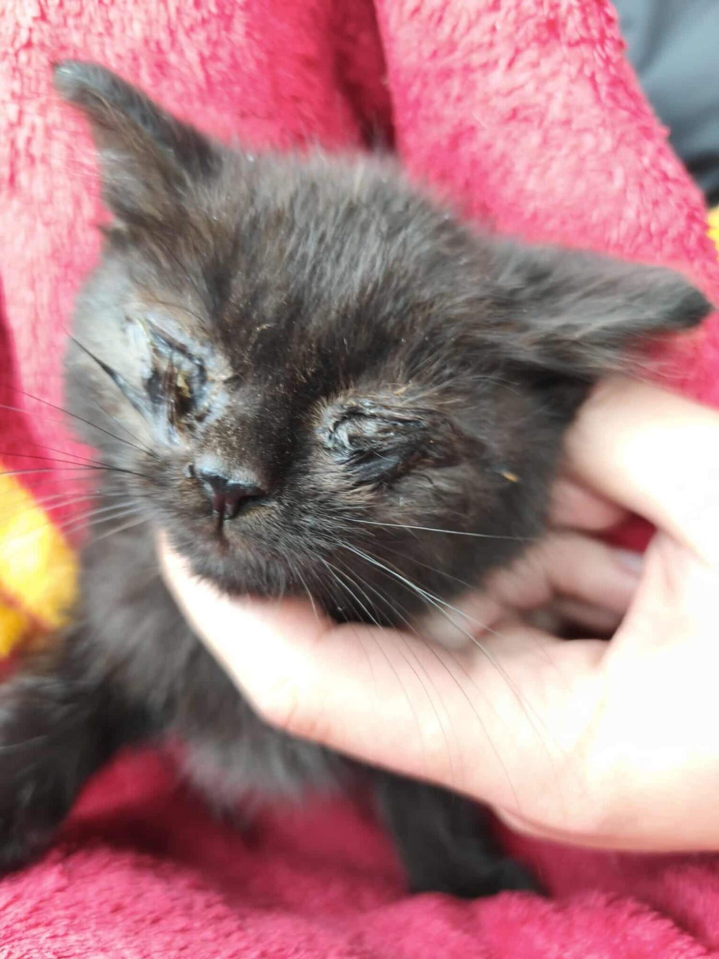 - v léčbě, zatím není k adopci - kočička nalezená se zlomenou čelistí, zřejmě po srážce s autem
